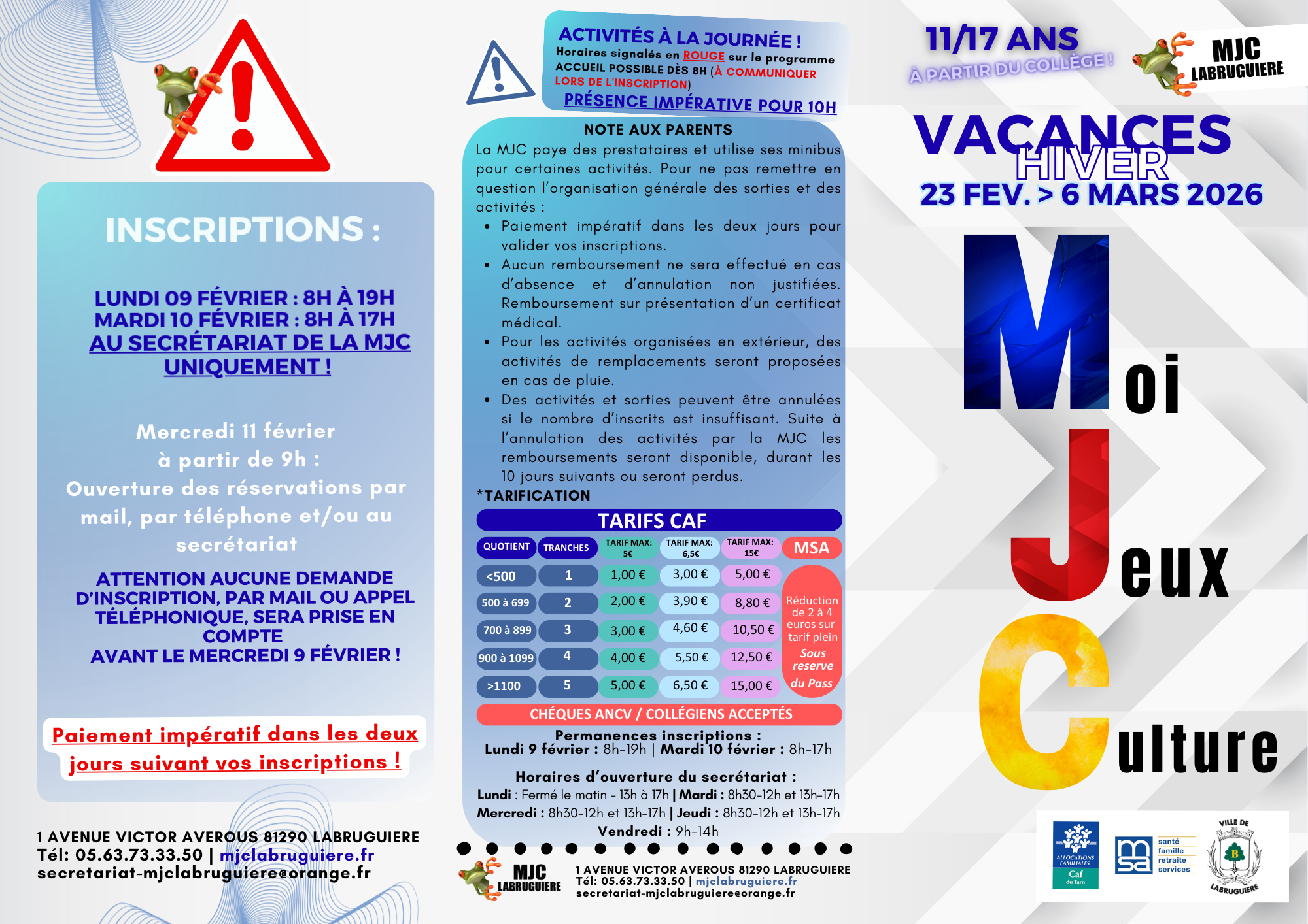 Aucune inscription ne sera prise en compte par téléphone ou par mail avant le 11 février.